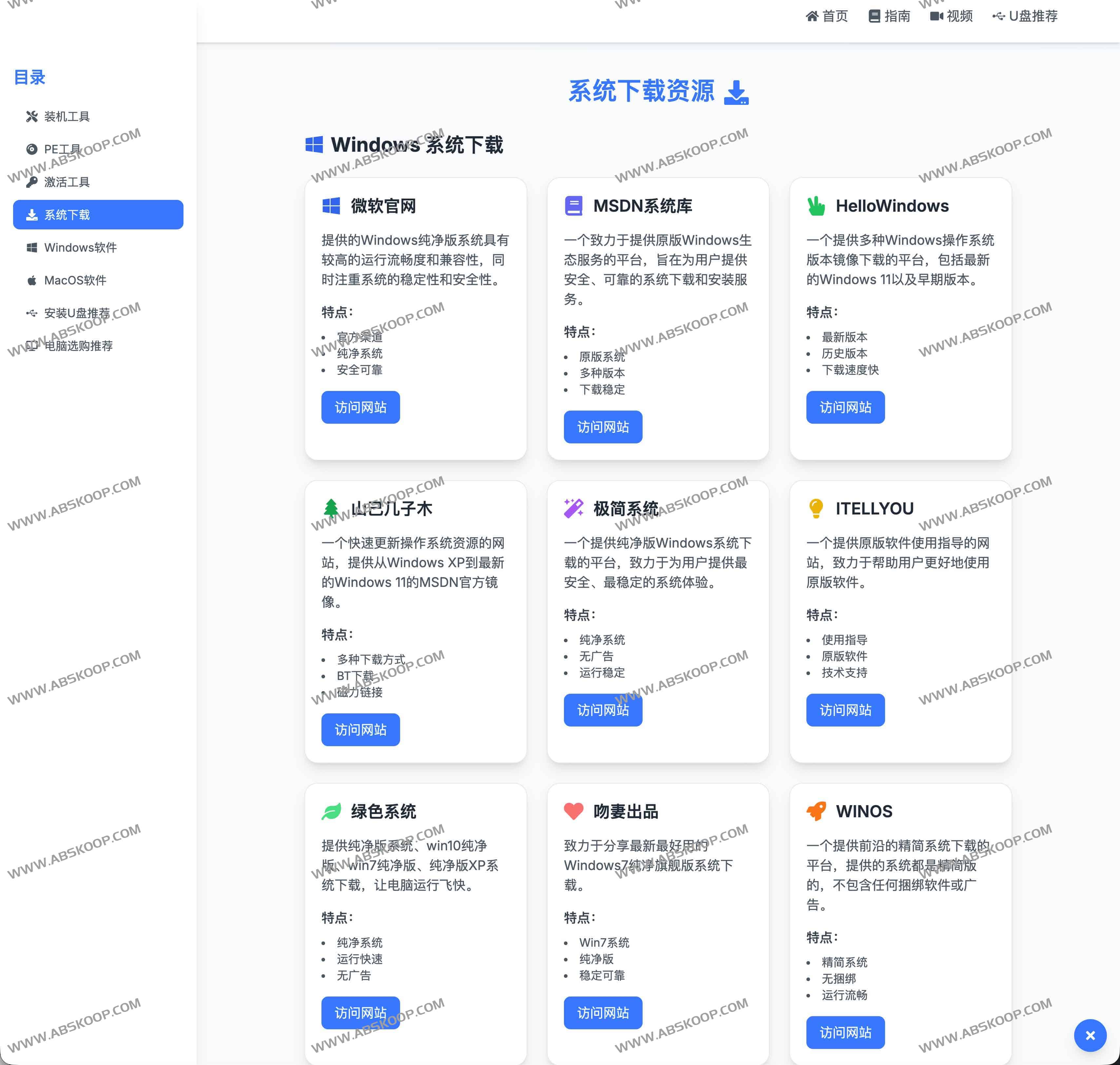 精选 Windows 与 Mac 的下载站点,标注原版、纯净、精简等常见版本取向,强调拒绝捆绑软件的安全取向。